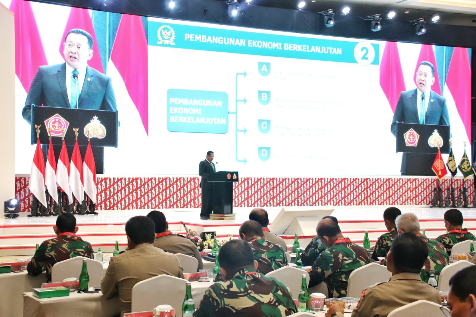 “Kedaulatan bangsa dan negara tidak boleh hanya bertumpu pada kekuatan fisik militer, karena potensi ancaman akan hadir dalam berbagai aspek, baik ekonomi, sosial-budaya, politik-ideologi, dan berbagai ancaman lainnya yang bersifat soft power. Karena itu, TNI dan Polri juga perlu semakin mewaspadai ancaman nirmiliter yang merusak ideologi negara, yang berpotensi hadir melalui dunia digital seperti metaverse, artificial intelligence, cloud computing, hingga blockchain,” ujar Bamsoet saat memberikan pembekalan umum pada Rapat Pimpinan TNI – Polri 2023, di Jakarta, Rabu (8/2/23).