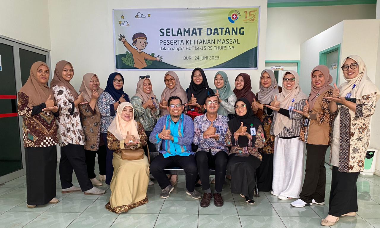 Duri,DuriPos.com – Jelang peringatan Hari Ulang Tahun (HUT) Ke-15, Rumah Sakit (RS) Thursina Duri mengelar kegiatan sunatan gratis untuk anak-anak yang berada di kota Duri meliputi 4 Kecamatan Daratan yaitu Kecamatan Mandau, Bathin Solapan, Pinggir dan Talang Muandau, Sabtu (24/6/2023).