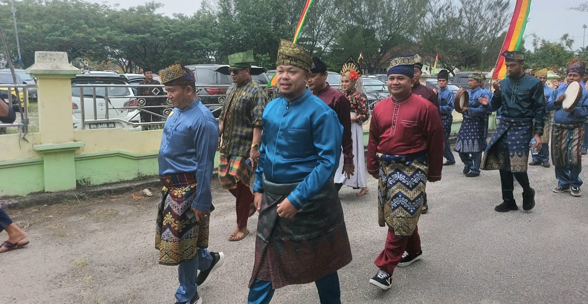 Pawai Tanjak dan pekan budaya yang di mulai dari depan Danramil 03/Mandau Simpang Pokok Jengkol menuju Gedung LAMR Mandau dilepas Camat Mandau Riki Rihardi S.STP, M.Si.