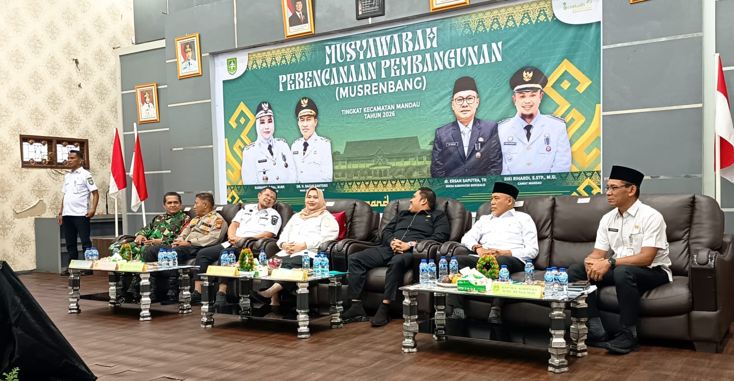 Musrenbang Kecamatan Mandau 2027 dibuka Bupati Bengkalis Kasmarni S.Sos.,M.MP turut dihadiri Ketua DPRD Bengkalis Septian Nugraha SE.,M.IP, Beserta Anggota DPRD Bengkalis Dapil Mandau, Kepala OPD dilingkup Pemkab Bengkalis, Lurah dan Kadas se-Kecamatan Mandau, Tokoh Masyarakat, Tokoh Agama serta Perwakilan Ormas dan OKP di Kecamatan Mandau.**