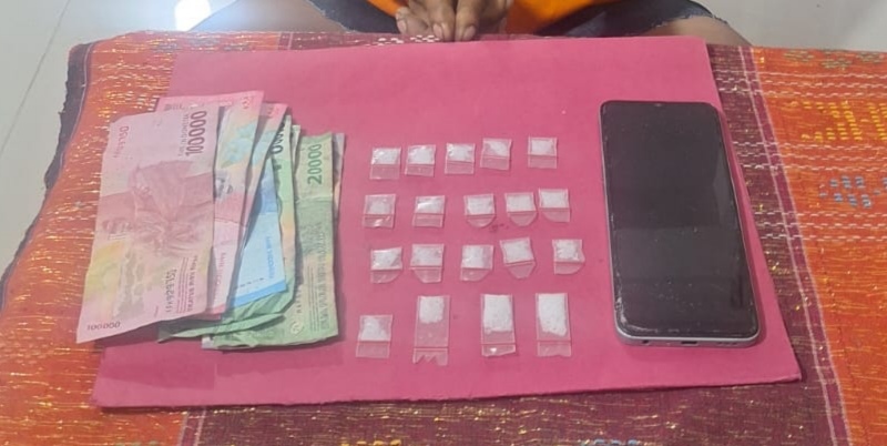 Dikatakan Kapolsek, dari hasil penggeledahan, polisi menemukan 19 paket sabu yang terdiri dari 16 paket kecil dan 3 paket sedang yang dibungkus dalam plastik pack. Selain itu, turut diamankan satu unit handphone dan uang tunai sebesar Rp680 ribu yang diduga berkaitan dengan aktivitas peredaran narkotika.